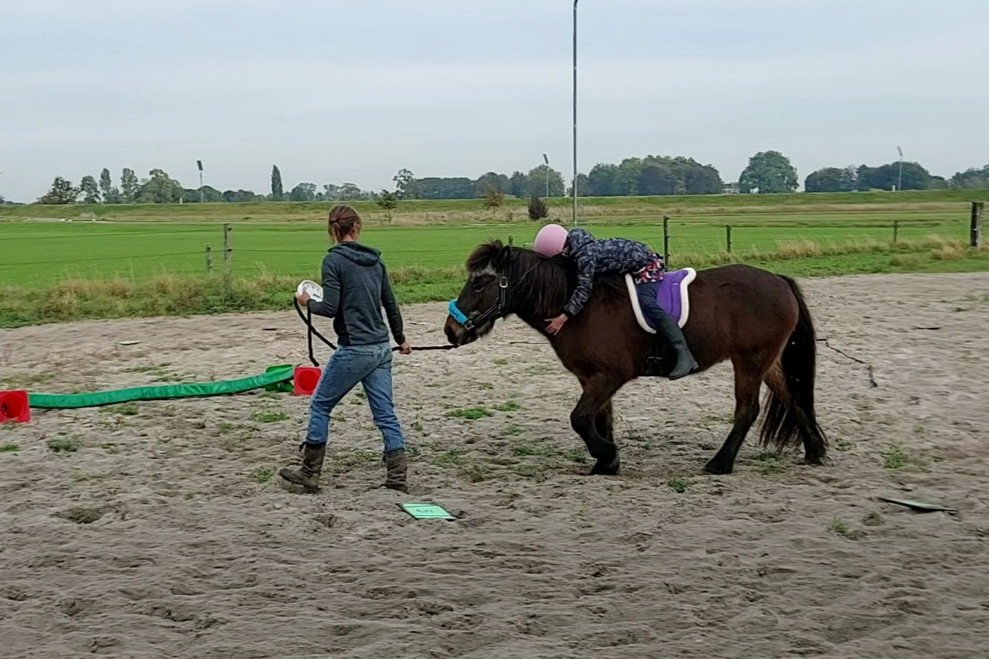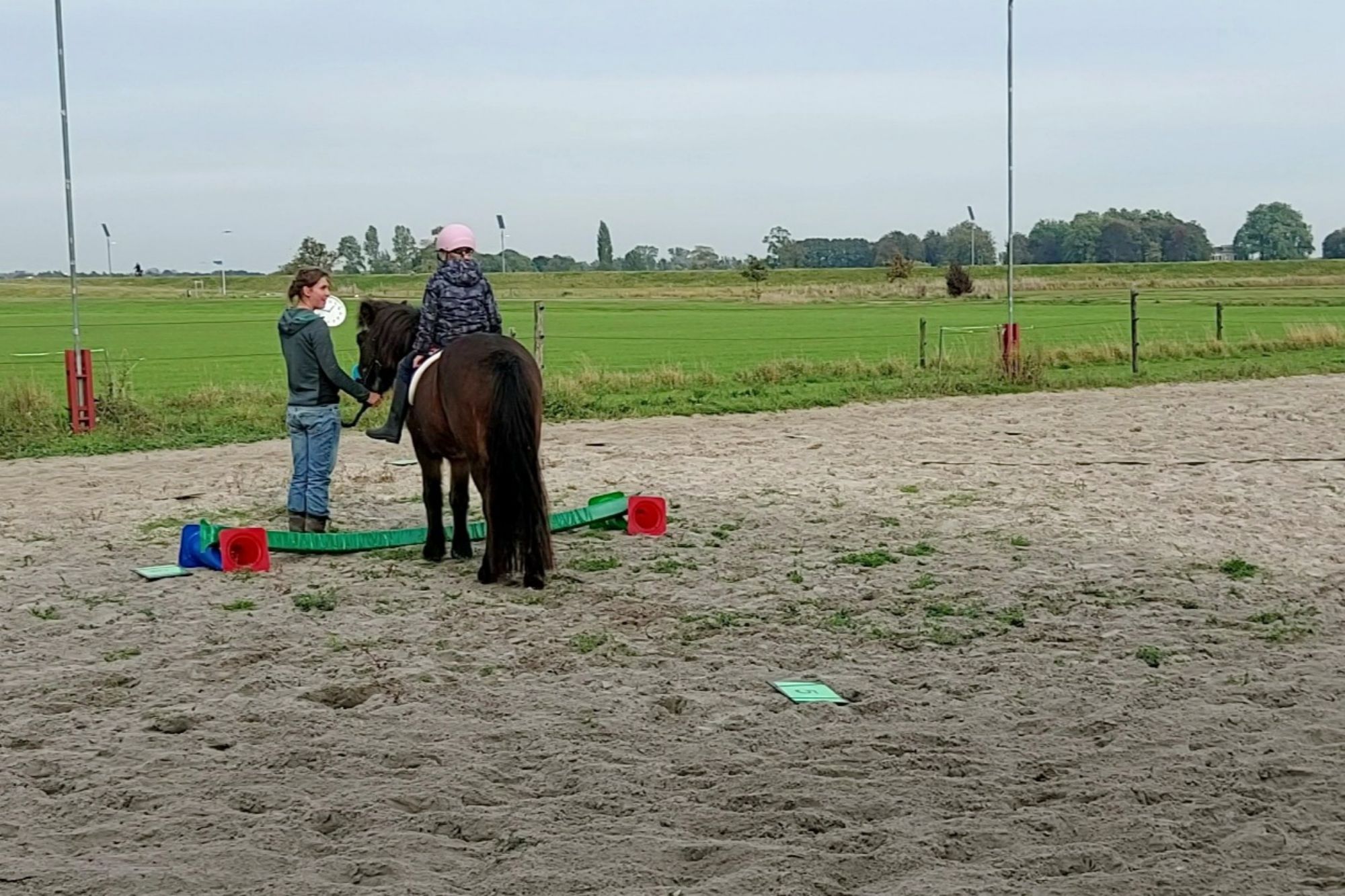 Na het klaarmaken van het paard volgt een warming-up met hersengym oefeningen om de linker- en rechterhersenhelft goed met elkaar te laten communiceren. Vervolgens wordt de lesstof in beweging en gevisualiseerd aangeboden, zowel op als naast het paard.
